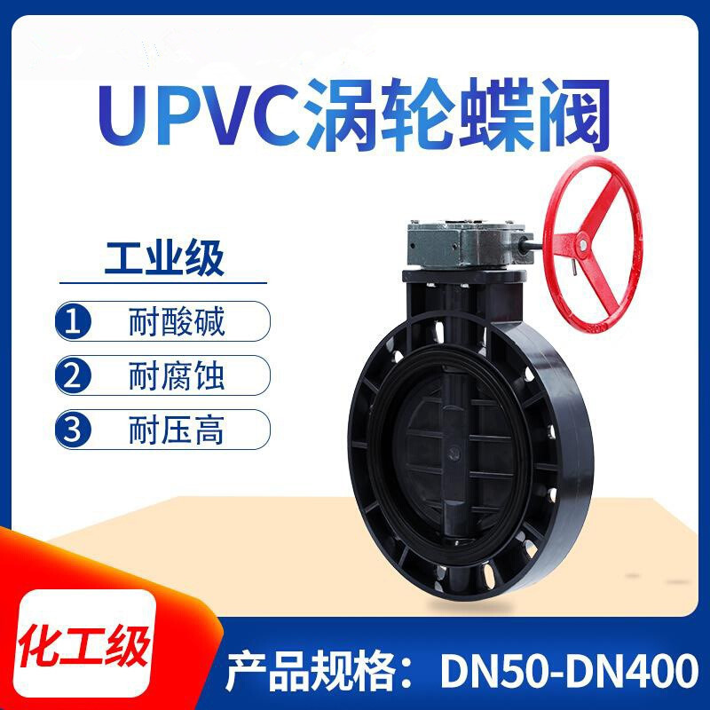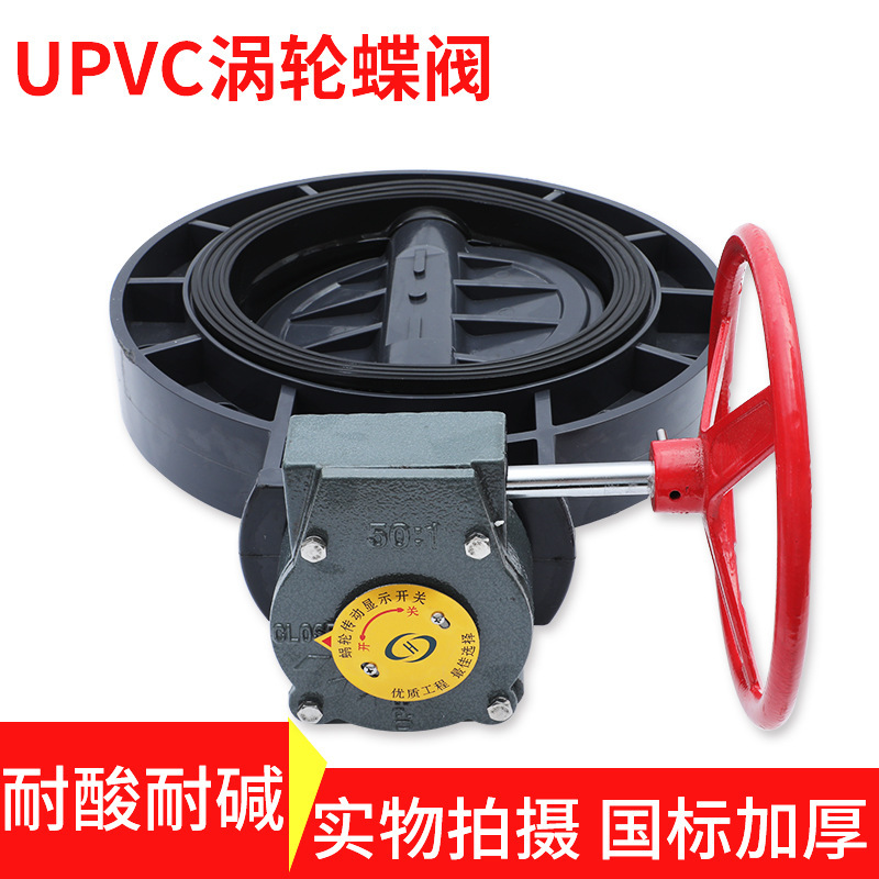 〉 UPVC涡轮蝶阀蜗齿式手摇蝶阀法兰对夹手轮化工EPDM阀门 300 350