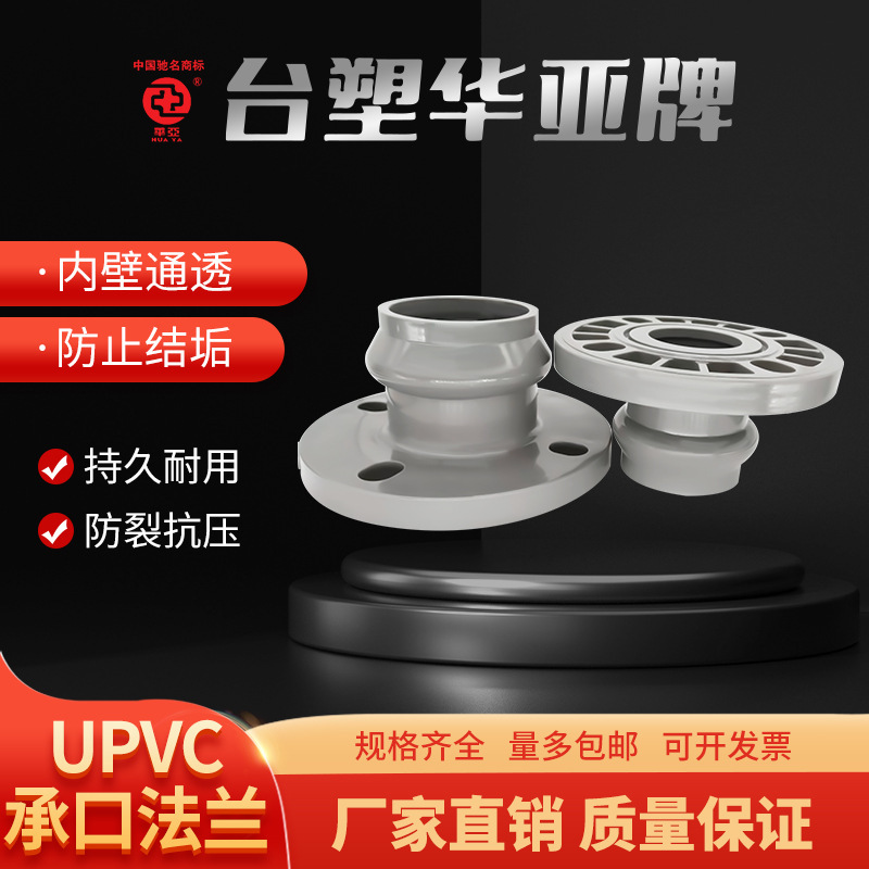 UPVC柔性承插承口塑胶法兰PN16抢修橡胶圈甲管乙管110 160 200