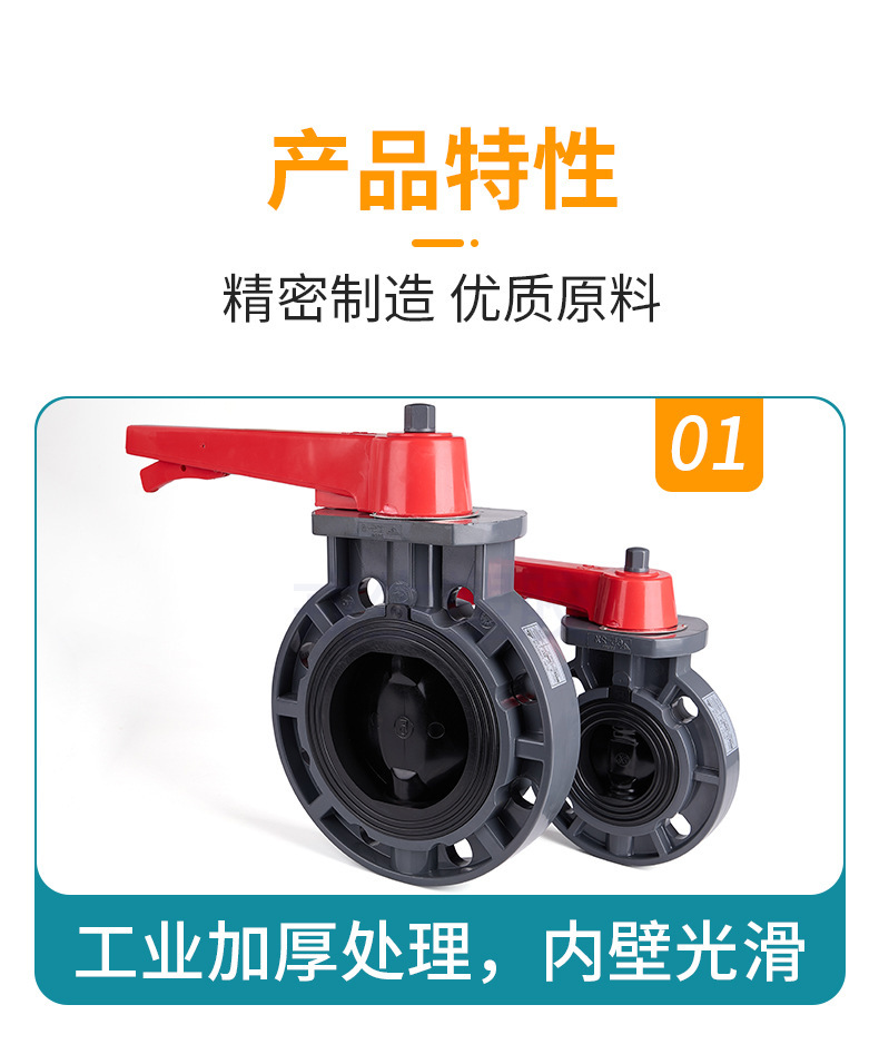 阔思(KUOSI)L22系列UPVC手柄式蝶阀,采用优质UPVC工业级原料一体成型,具有抗压、耐磨、耐酸碱、耐腐蚀等特性,广泛应用于电子制造、药品生产、化工合成及高端制造等领域。产品内壁光滑,流阻小,密封性好,配备SUS304不锈钢弹簧与配件,确保长期稳定运行。规格涵盖DN50-DN200,尺寸精度高,允许误差0%~1%,是化工管道系统中理想的控制阀门解决方案。