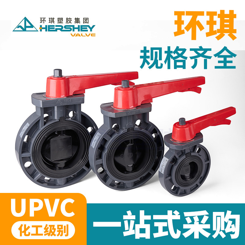 〉 环琪UPVC蝶阀把手式塑料开关阀门法兰PVC对夹式蝶阀国标63 75 90