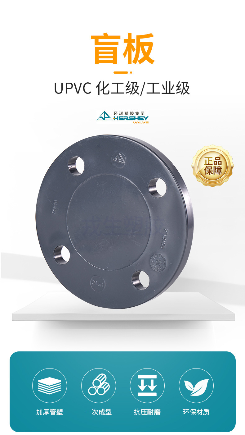 环琪塑胶集团HERSHEY VALVE正品保障,提供工业级/化工级UPVC盲板,产品采用优质UPVC颗粒一次成型,管壁加厚设计,具备优异的抗压性、耐磨性与耐腐蚀性能。广泛应用于电子制造(如半导体、集成电路、液晶显示器)、药品生产(医用无菌水、人工肾析水)、化工合成(化肥、精细化工、化妆品)及高端制造(电镀、镀膜玻璃、印染)等行业。产品规格涵盖DN15至DN300,尺寸精准,材质环保,确保长期稳定运行。