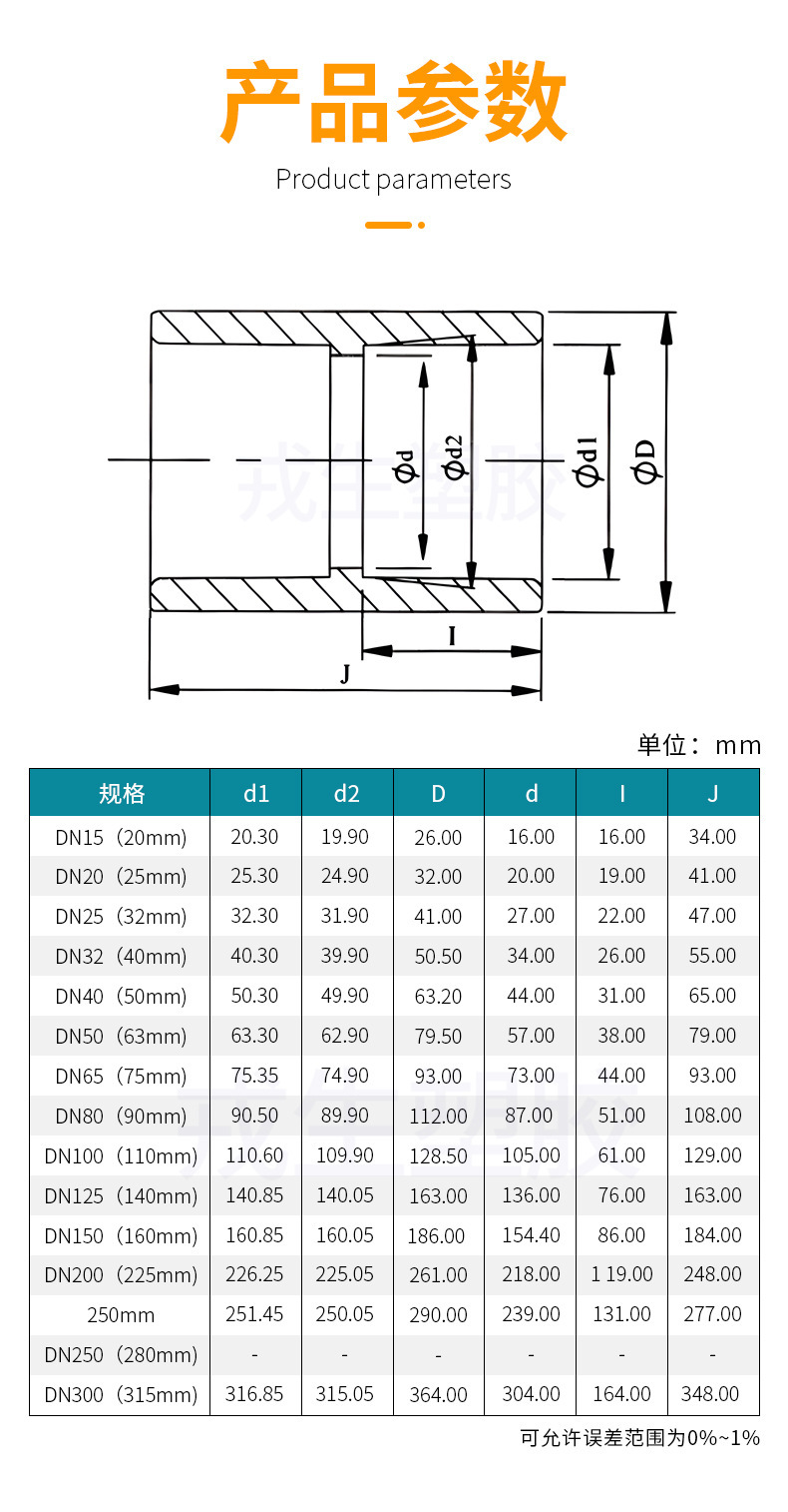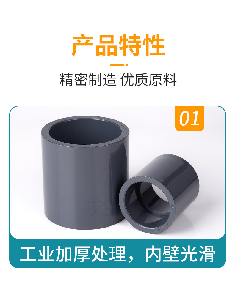 〉 环琪UPVC直接接头工业化工管二通管件内插直通配件国标4分 32 50