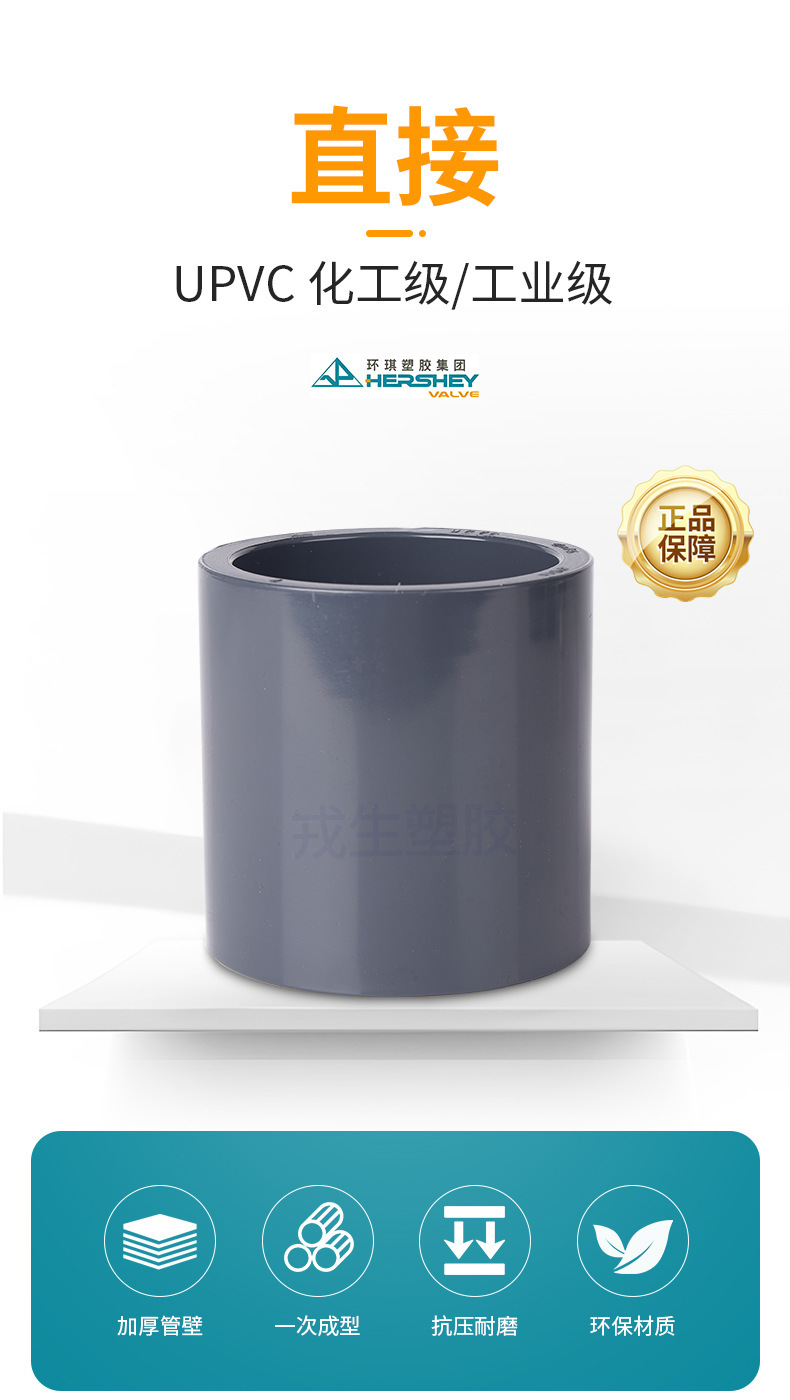 环琪UPVC直接接头工业化工管二通管件内插直通配件国标4分 32 50