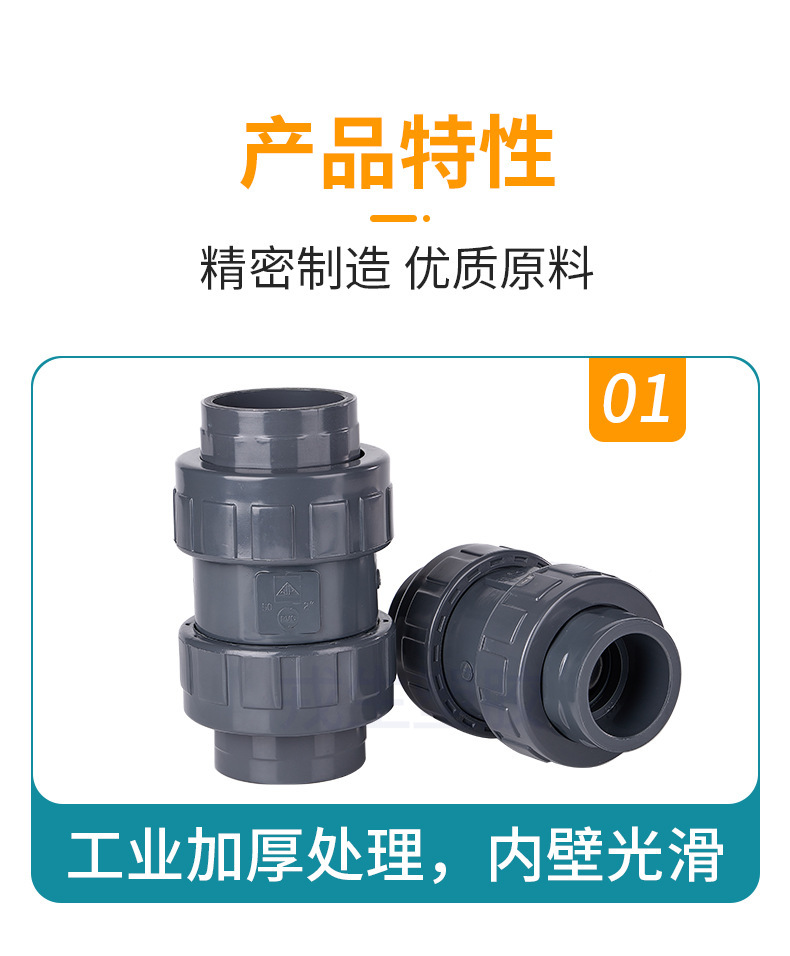 〉 环琪upvc双活接止回阀双由令止逆阀 球型逆止阀国标pvc-u塑料球芯