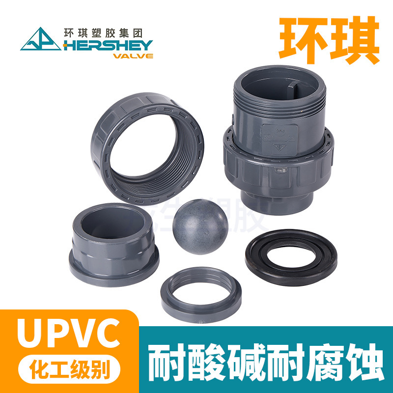 环琪upvc双活接止回阀双由令止逆阀 球型逆止阀国标pvc-u塑料球芯