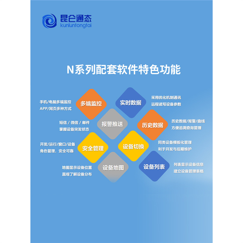 昆仑技创N系列物联网触摸屏是一款高性能嵌入式一体化HMI设备,涵盖7寸、10寸、12寸、14寸、15寸全系列型号(如TPC7022Ni、TPC1031Nt、TPC1551Ni等),搭载ARM或Cortex-A53多核处理器,主频高达1GHz,运行稳定流畅。产品支持4G、Wi-Fi和LAN三种联网方式,满足工业现场灵活组网需求。 N系列集成MCGS组态软件,具备远程下载/上传HMI工程、VNC画面同步监控、PLC程序穿透调试、WEB云端监控及数据接口对接第三方平台等功能,广泛应用于远程运维、单机监控、企业大屏管理和数据上云场景。支持Modbus、MQTT、HJ212等多种通讯协议,实现设备集中管理与智能控制。 设备采用工业级设计,前面板防护等级达IP65,适应0℃~50℃工作环境,配备TFT液晶屏(分辨率800×480至1024×600),支持四线电阻式触摸,接口丰富(RS232、RS485、USB、LAN),适用于各类工业自动化、智能制造与远程监控系统,助力企业实现数字化升级。