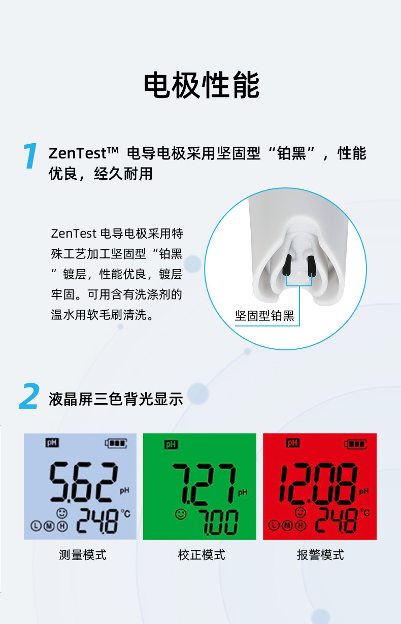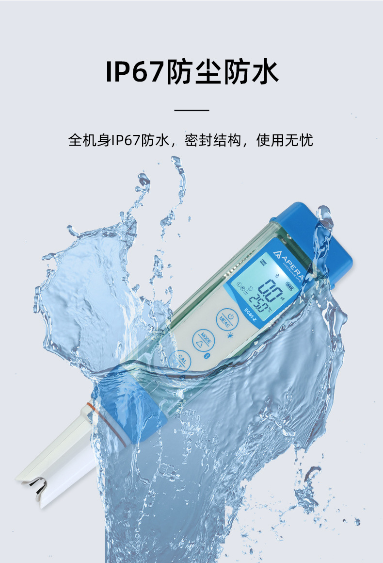 APERA EC60-Z智能电导率测试仪是一款专为专业水质测量设计的高精度便携式仪器,由上海三信沛瑞(SANXIN CAPERA)原厂生产,品牌源自中国,畅销美日欧市场。该仪器支持蓝牙连接ZenTest智能APP,实现手机与设备双向控制,即使无手机也可独立使用。 产品配备坚固型铂黑电极(EC60-DE),具备优良导电性能和耐用性,支持可更换设计,延长仪器使用寿命。IP67级全机身防水防尘,适用于复杂环境下的现场测量。支持四种显示模式:基本模式、指针模式、曲线模式和列表模式,便于趋势分析与数据管理。 测量范围覆盖0~20mS/cm,精度达±1%F.S,同时支持TDS、盐度、电阻率和温度测量,自动温度补偿(0~50℃),适用于常规水溶液的多场景应用,广泛用于教育科研、环境监测、饮品质量、污水处理、农业灌溉及生活用水等领域。 内置GLP数据管理功能,支持手动/自动存储、校准提醒、测量值报警、GPS定位标记、照片附加等功能,数据可通过APP轻松导出与分享。标配包括测试仪、两种校准液(1413μS/cm 和 12.88mS/cm)、挂绳、手提箱及说明书等。 本产品享受2年全国联保,支持开具13%增值税专用发票或普通发票(需备注开票信息),订单满2000元即赠定制皮革笔记本+水性笔(价值50元)。三信专注电化学分析30年,拥有ISO9001:2015、CE、RoHS等多项权威认证,品质值得信赖。
